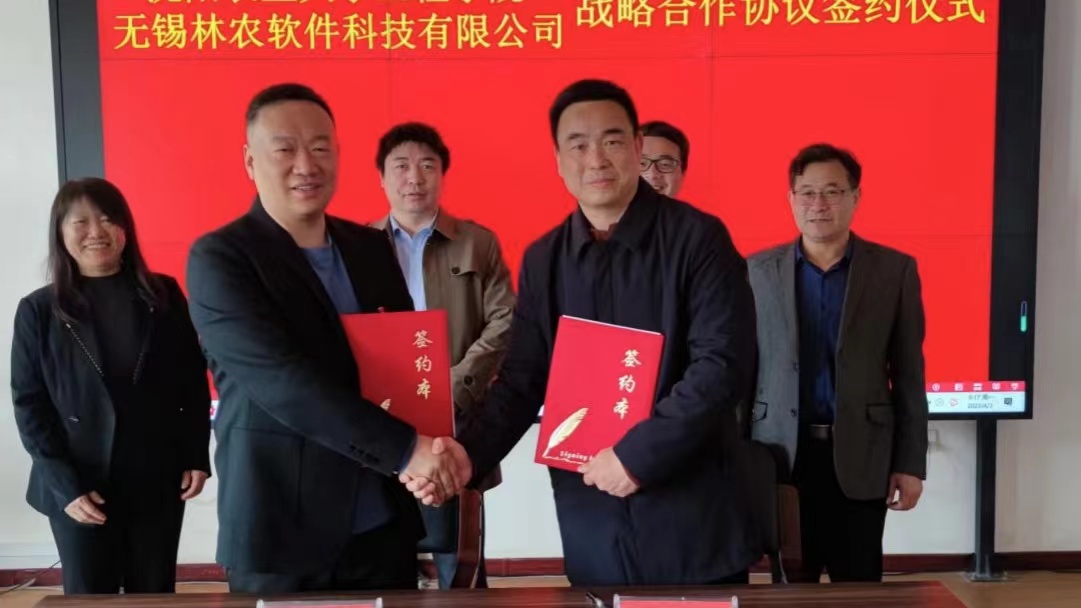 星空平台院长王伟、副院长邬立岩、辛明金教授、宋玉秋教授、无锡林农软件科技有限公司董事长李小卫和总经理李巢湖出席签约仪式。
