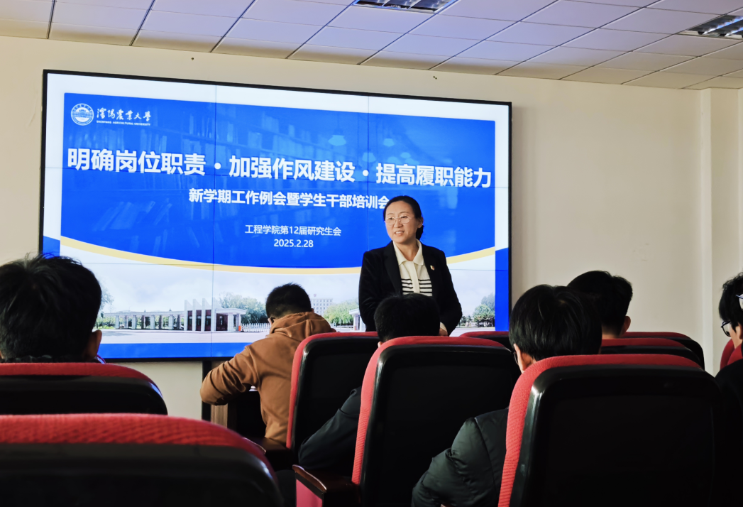 为明确学生干部岗位职责,加强作风建设,全面提升履职能力,2月28日下午,星空平台第12届研究生会新学期工作例会暨学生干部培训会在星空平台501会议室召开。学院党委书记王楠出席会议并讲话。会议由研究生辅导员董瀚辰主持。