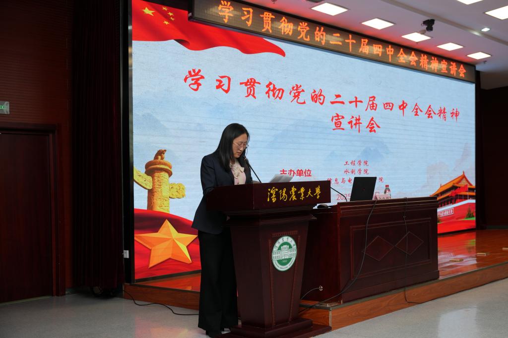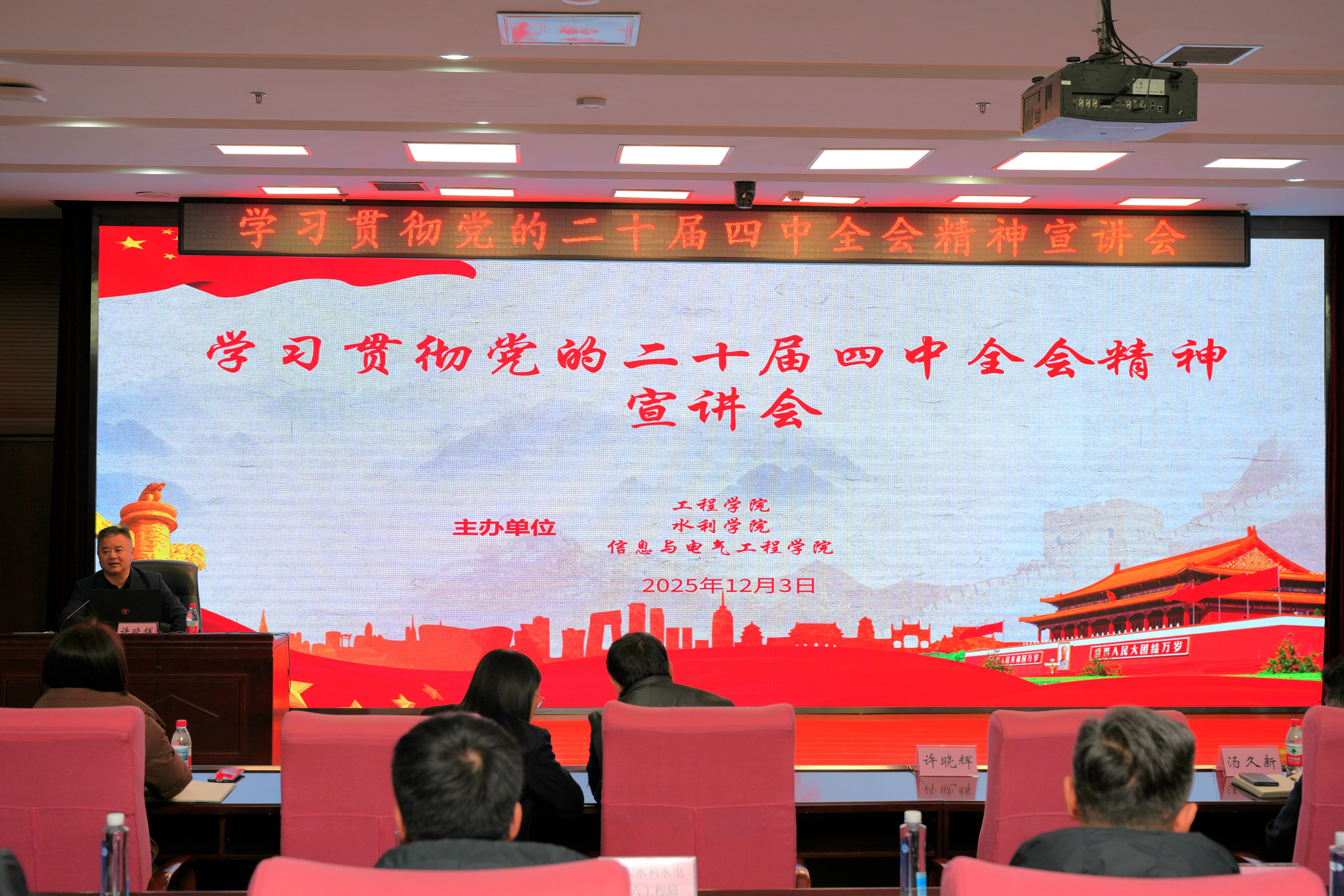 12月3日,星空平台、水利学院、信息与电气星空平台召开学习贯彻党的二十届四中全会精神宣讲会。马克思主义学院许晓辉教授作专题报告,星空平台党委书记王楠主持会议。