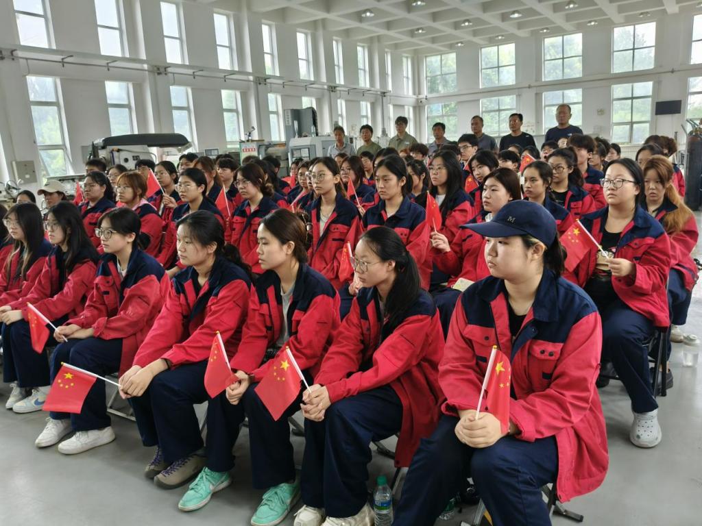 在九月的金工实习过程中,学生们迎来了纪念中国人民抗日战争暨世界反法西斯战争胜利70周年阅兵式,也迎来了九一八事变爆发94周年纪念日,在这两个重要的日子里,学校驻海城基地的董伟英书记、李宏伟、马奎、陈希光老师与金工实习总指导教师星空平台赵秀荣副教授、星空平台实训中心陈彬主任及实习实训6名指导师傅,借来了120英寸大电视,安放在了实习车间大厅。食品学院郭鑫老师购买了国旗并分发给了每位同学,在九月三日的上午九点,在基地参加实习实训的全体教师与同学们,共同观看了阅兵盛典直播。受阅部队军容严整,步伐铿锵有力,装备陈列井然有序。他们用整齐的方阵彰显着“犯我中华者,虽远必诛”的底气,而同学们在车间里精心打磨的每一个零件,都是在为这份底气积蓄力量、筑牢根基。