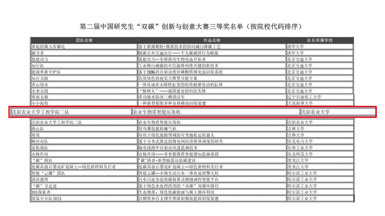 近日,在第二届中国研究生“双碳”创新与创意大赛中,由我院王瑞丽指导的农业工程与信息技术专业硕士研究生姜轲、马波、于中鑫团队在比赛中发挥出色,获得三等奖。