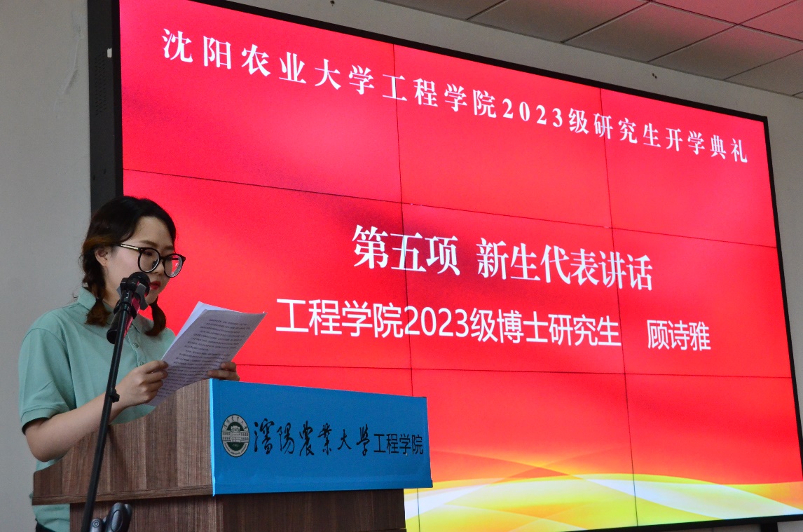 2023级农业机械化工程专业博士研究生顾诗雅代表新生发言