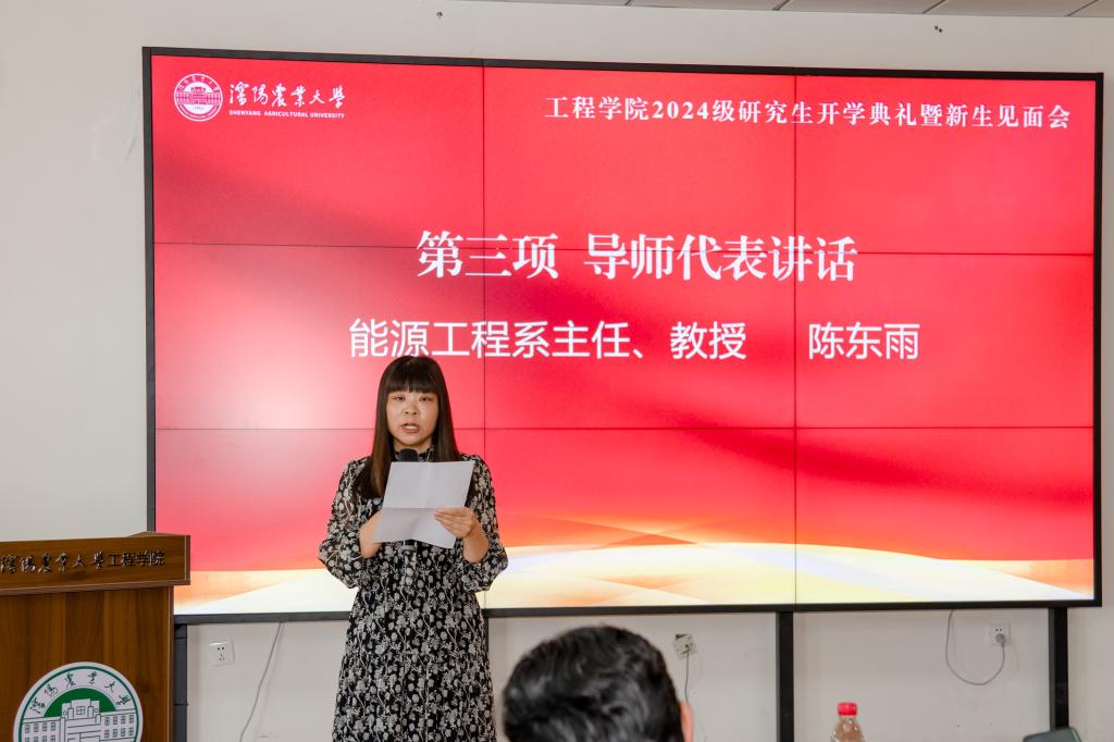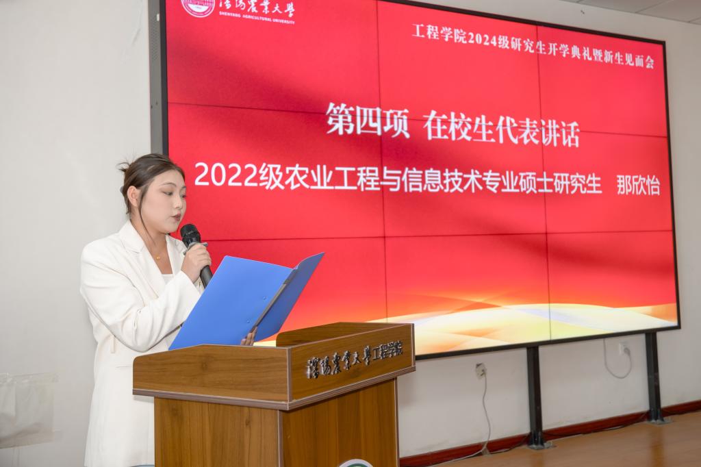省优秀硕士学位论文指导教师、能源工程系主任陈东雨教授作为研究生导师代表发言。2022级农业工程与信息技术专业硕士研究生那欣怡、2024级农业机械化工程专业硕士研究生谢湛秋分别代表在校生和新生发言。