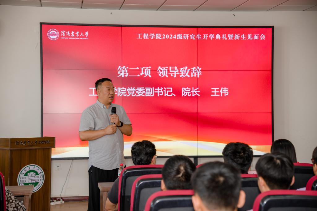 典礼结束后,王伟院长为2024级研究生新同学作了题为《现代农业工程师的摇篮》的报告,从历史沿革、师资队伍、学科建设、科研成果等方面对学院进行了系统介绍。(文字:董瀚辰 摄影:崔世炜)